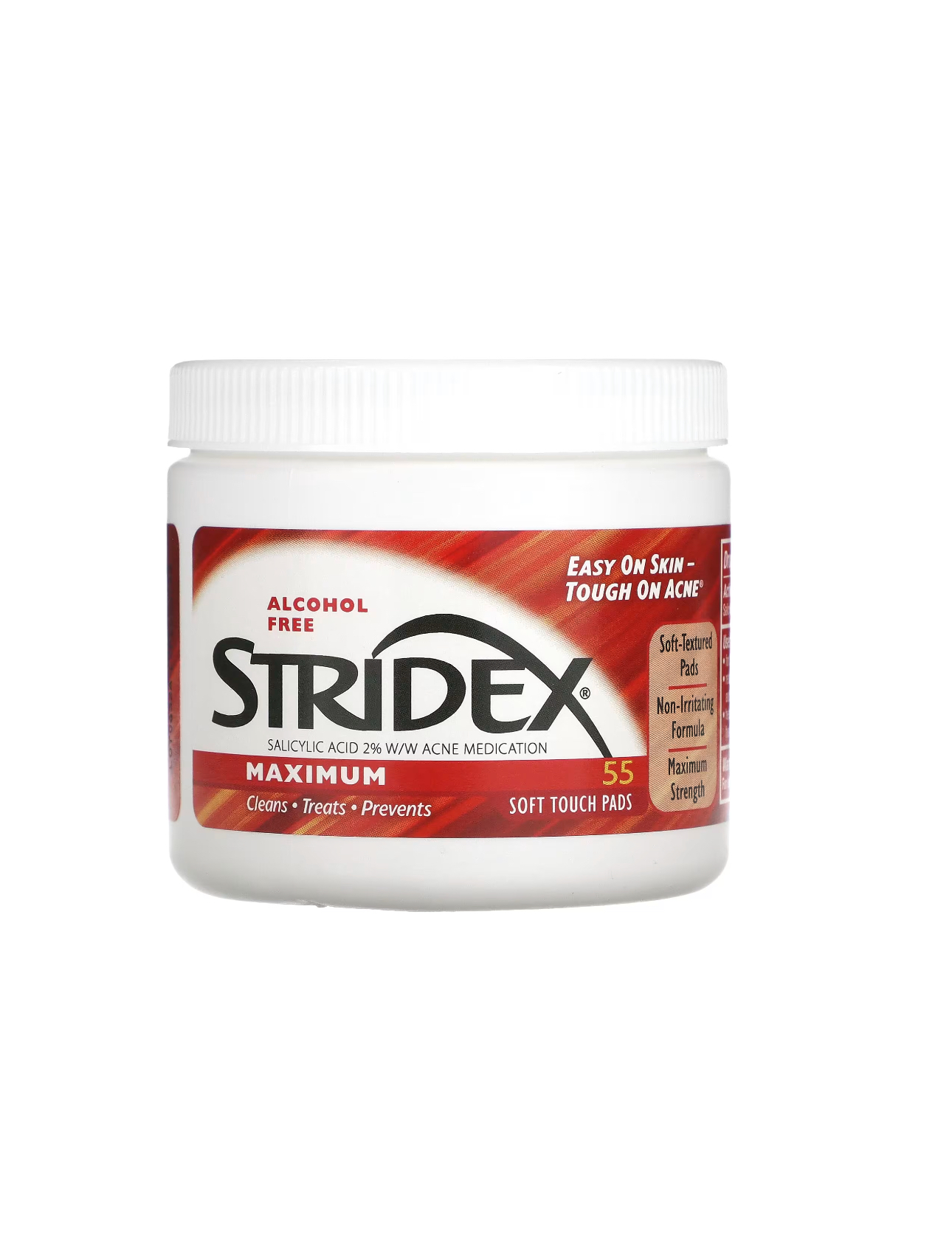 يعالج – يزيل Stridex البثور الموجودة ويساعد في القضاء على الرؤوس السوداء بحمض الساليسيليك ، وهو دواء مثبت لعلاج حب الشباب.