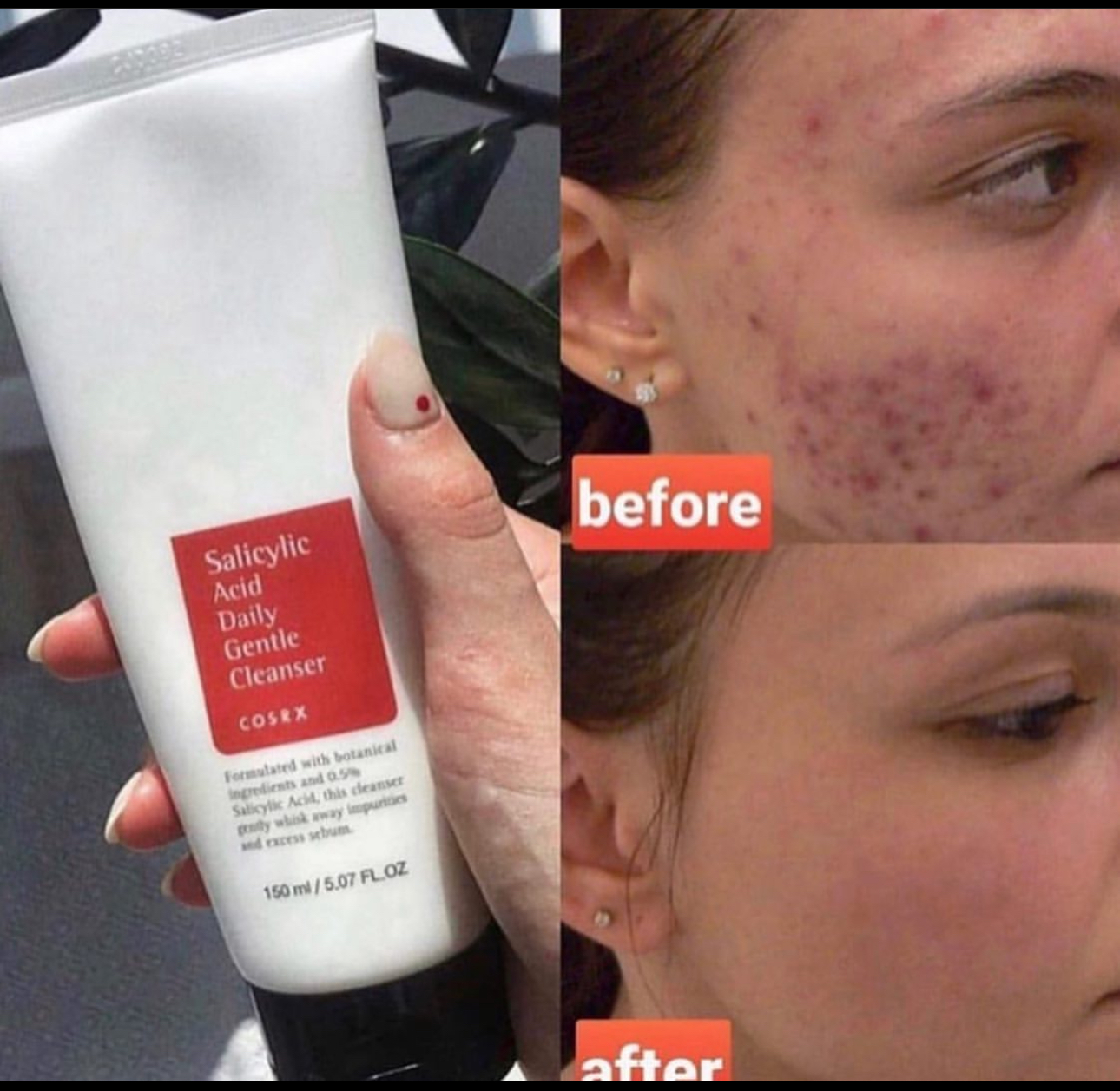 – يساعد المنظف اليومي اللطيف بحمض الساليسيليك على تقليل البثور ويعزز بشرة نقية