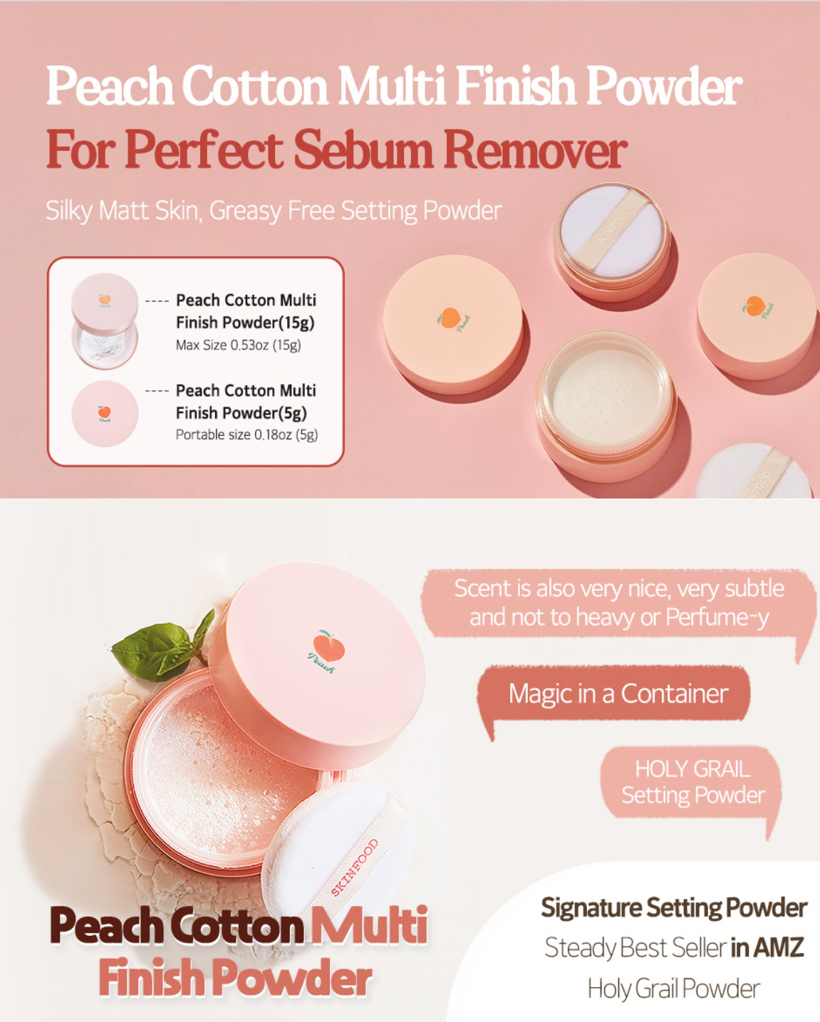 مسحوق نهائي يتحكم في الزهم المفرط، مع تهدئة مشاكل الجلد مع مستخلص الخوخ ومسحوق الكالامين، لبشرة صحية.